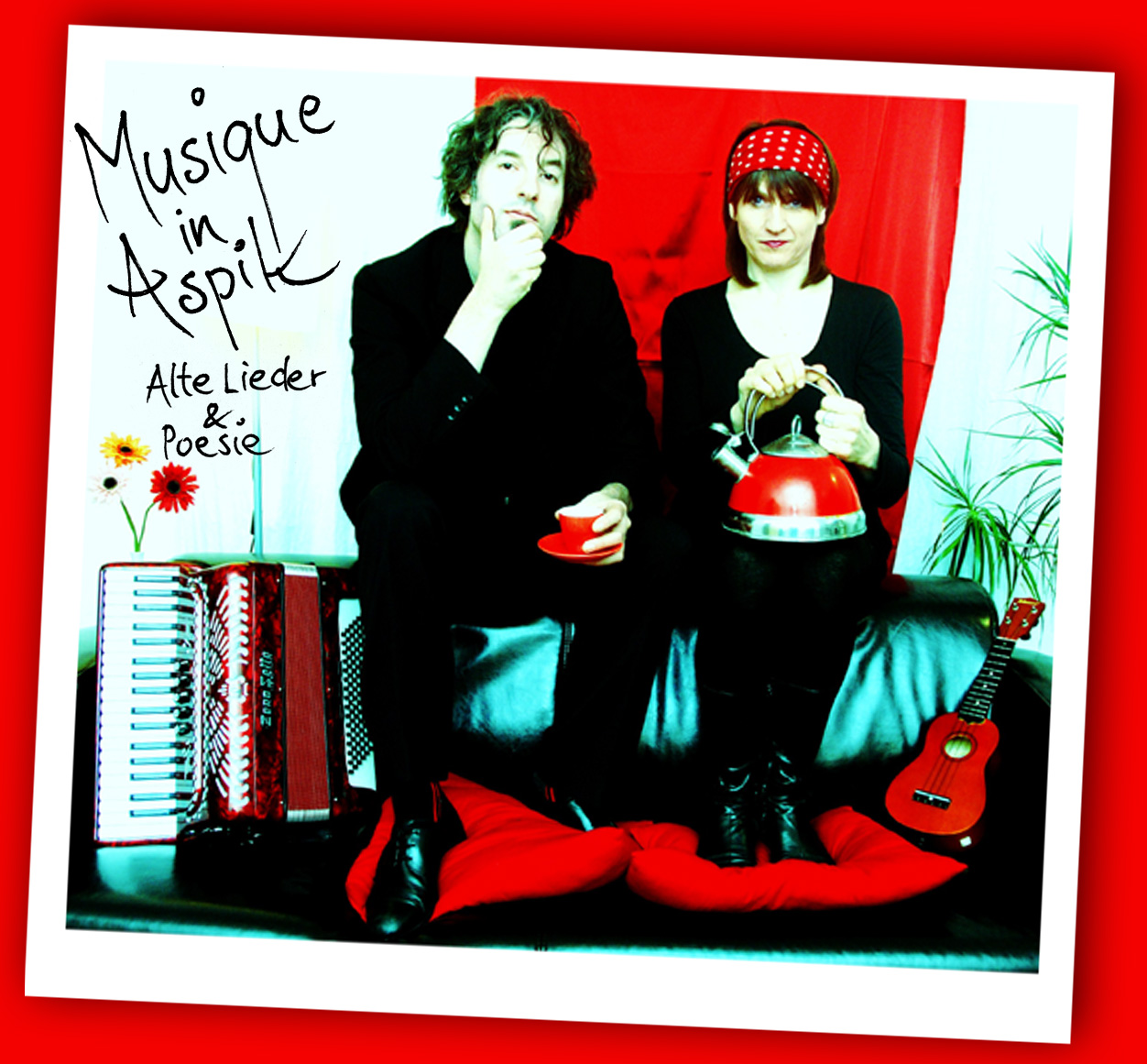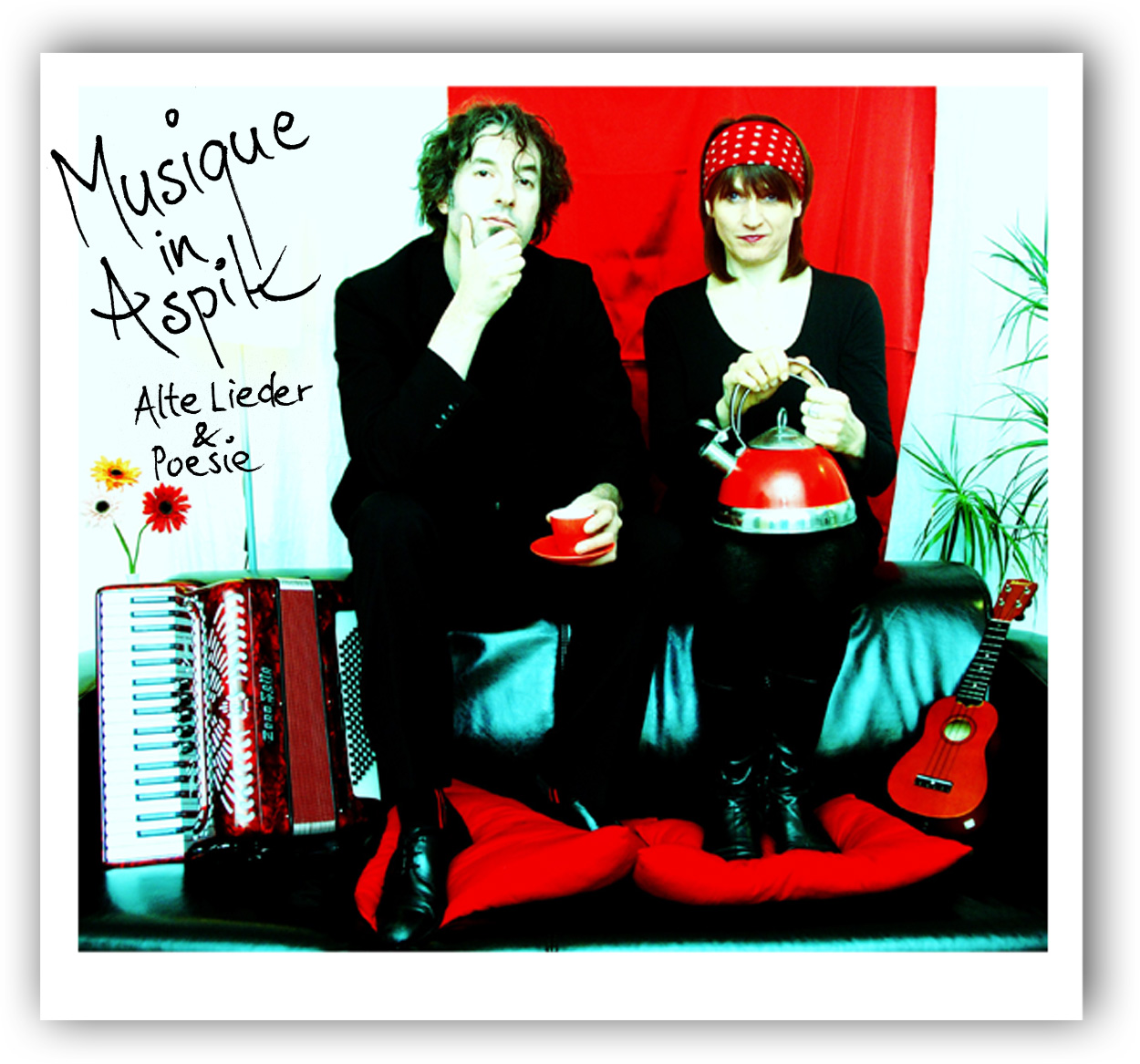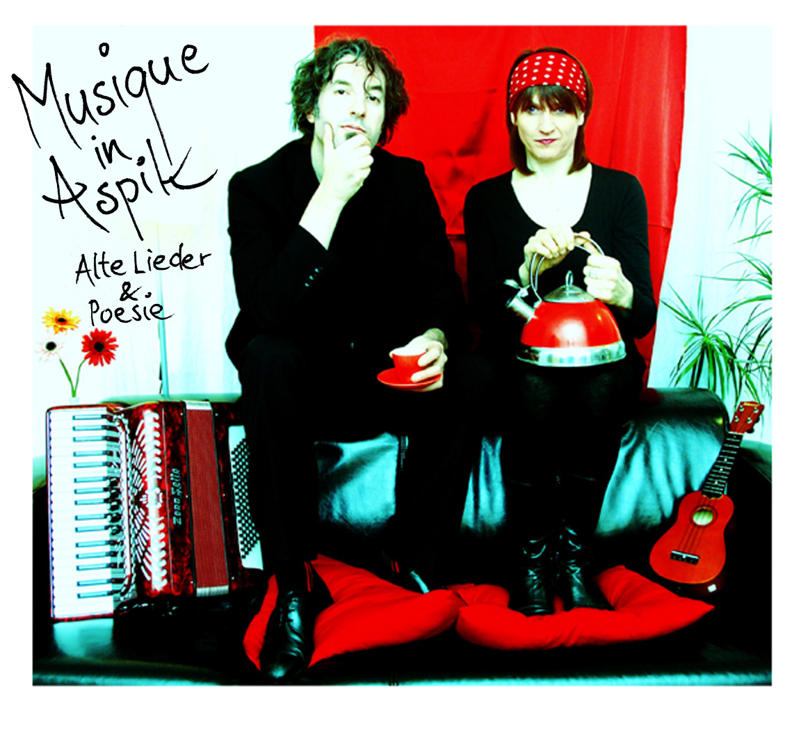Das "Volksweltmusiklyrikduo" MUSIQUE IN ASPIK – Alte Lieder & Poesie aus Augsburg, bestehend aus Petra Küfner (Gesang, Flöten, Ukulele...) und Markus Wangler (Gitarre, Akkordeon, Cajon, Loopbox...) durchstöbert schon seit einiger Zeit die Dachböden deutscher Liedkultur nach poetischen deutschen Volksliedern und entdeckte dabei so manchen Liederschatz.